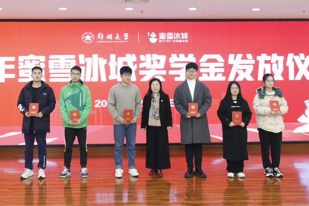 近日,2023年度“蜜雪冰城獎學金”發放儀式在主校區舉行。蜜雪集團公共事務高級總監劉偉偉、鄭州大學副校長張倩紅出席。黨委學生工作部、對外聯絡辦公室、新聞與傳播學院、生命科學學院等相關單位負責人及獲獎學生代表參加活動。