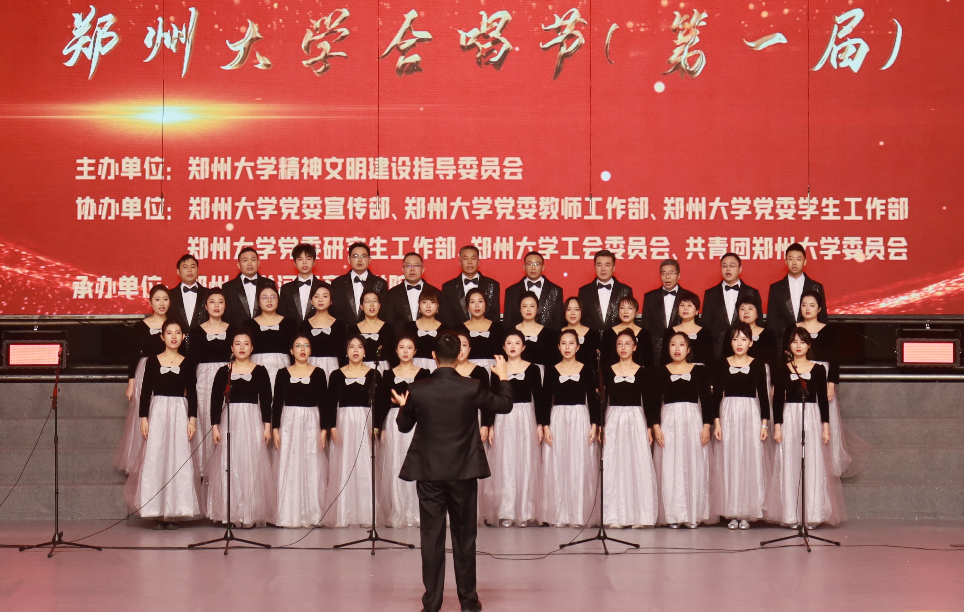 為豐富校園文化生活,營造喜慶祥和的迎新年氛圍,由鄭州大學精神文明建設指導委員會主辦,鄭州大學河南音樂學院、校工會、校團委承辦的第一屆合唱節于12月21日至23日在主校區舉辦。本次合唱節分為教工組和學生組兩場比賽,各單位高度重視、精心組織、積極報名、認真排練,最終共有51支教工組隊伍和40支學生隊伍參加比賽。比賽中,各參賽隊伍引吭高歌,激情澎湃,彰顯了廣大師生員工積極向上的精神風貌,展示了大家奮力建設世界一流大學的熱情與豪邁。現將各參賽隊伍風采予以展示,敬請欣賞。(劉昊 楊俊鋒 蔡孟岑 程映雪 高雨菲 張紫凝 丁佳楠 潘少帥 阮紹涵 武子旭 攝影)