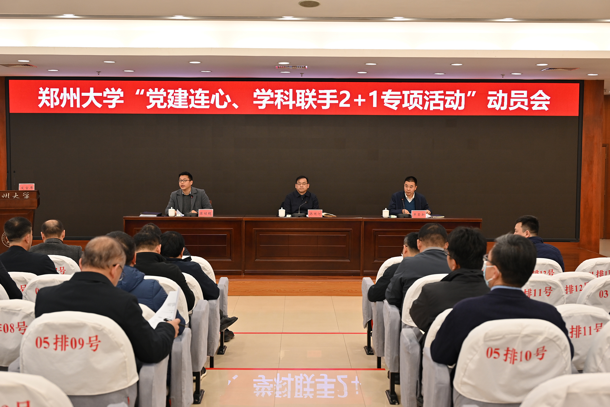 為深入貫徹學校“學科建設年”部署要求,深入推進“221”戰略和學科建設“三大計劃”,充分發揮黨建引領保障作用,以高質量黨建推動學科高質量發展,2月26日,鄭州大學召開“黨建連心、學科聯手2+1”專項活動動員會。校黨委副書記、工會主席韓國河,副校長單崇新出席會議,參與共建的有關部門與重點學科建設單位負責同志參加會議。黨委組織部負責同志主持會議。