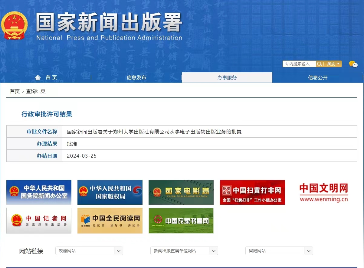 鄭州大學出版社獲批電子出版物出版業(yè)務許可
