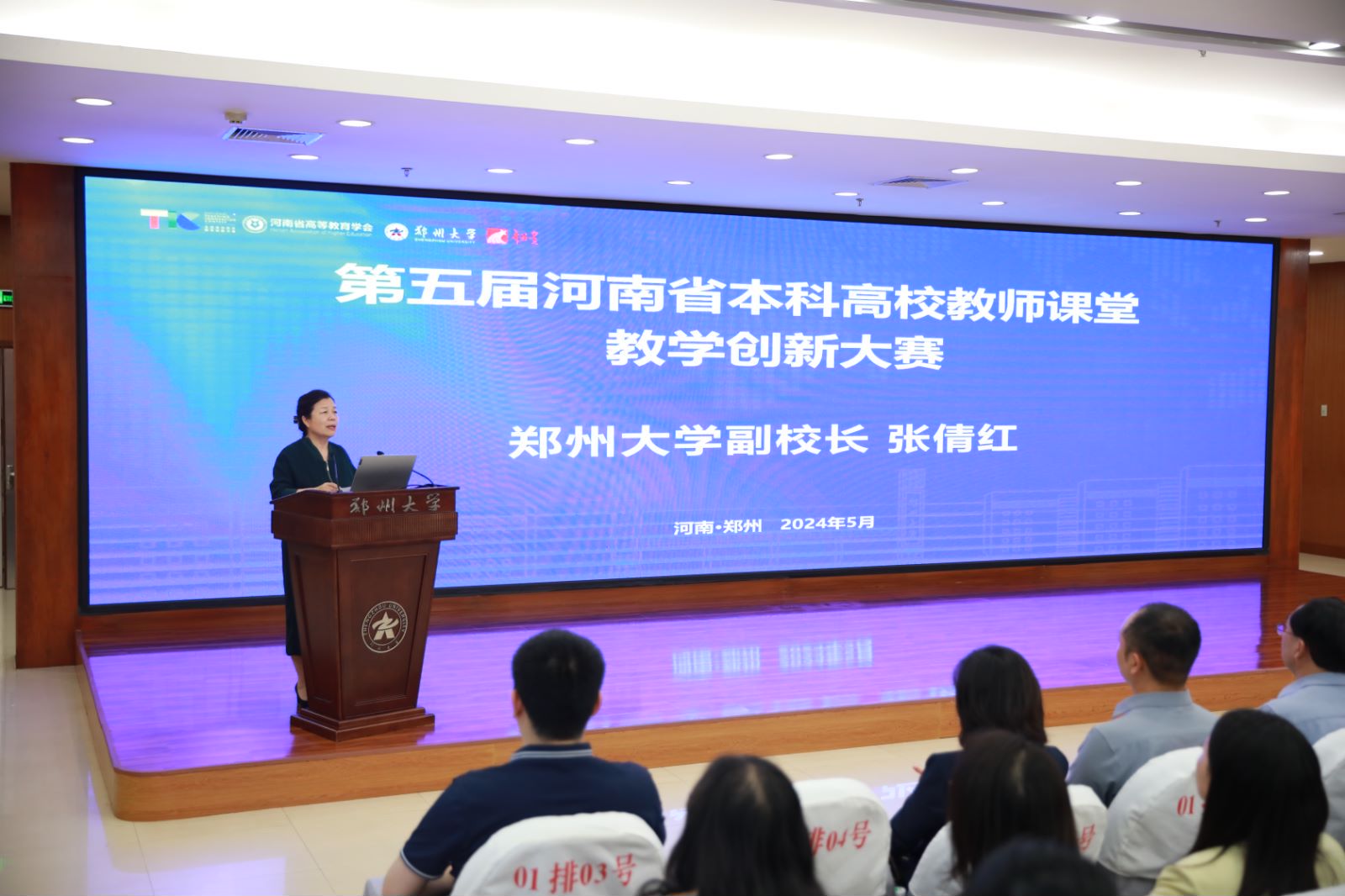 近日,第五屆河南省本科高校教師課堂教學創新大賽暨頒獎典禮在我校舉行。省教育廳二級巡視員曹克舜,鄭州大學副校長張倩紅出席。省教育廳高教處、省高等教育學會、評審專家代表、獲獎教師代表等200余人參加。