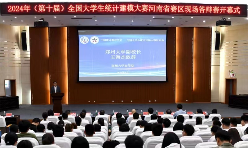 6月16日,由鄭州大學商學院承辦的2024(第十屆)中國大學生統計建模大賽河南省賽區現場答辯賽在主校區舉行。河南省統計局二級巡視員、投資處處長顧俊龍,鄭州大學副校長王海杰等領導出席開幕式并致辭。學校相關職能部門負責同志、商學院班子成員參加開幕式。河南省統計局業務部門主要負責同志和省內外高校統計學科專家學者擔任評委,來自全省18所高校的47支代表隊同場競技,角逐晉級全國賽的入場券。