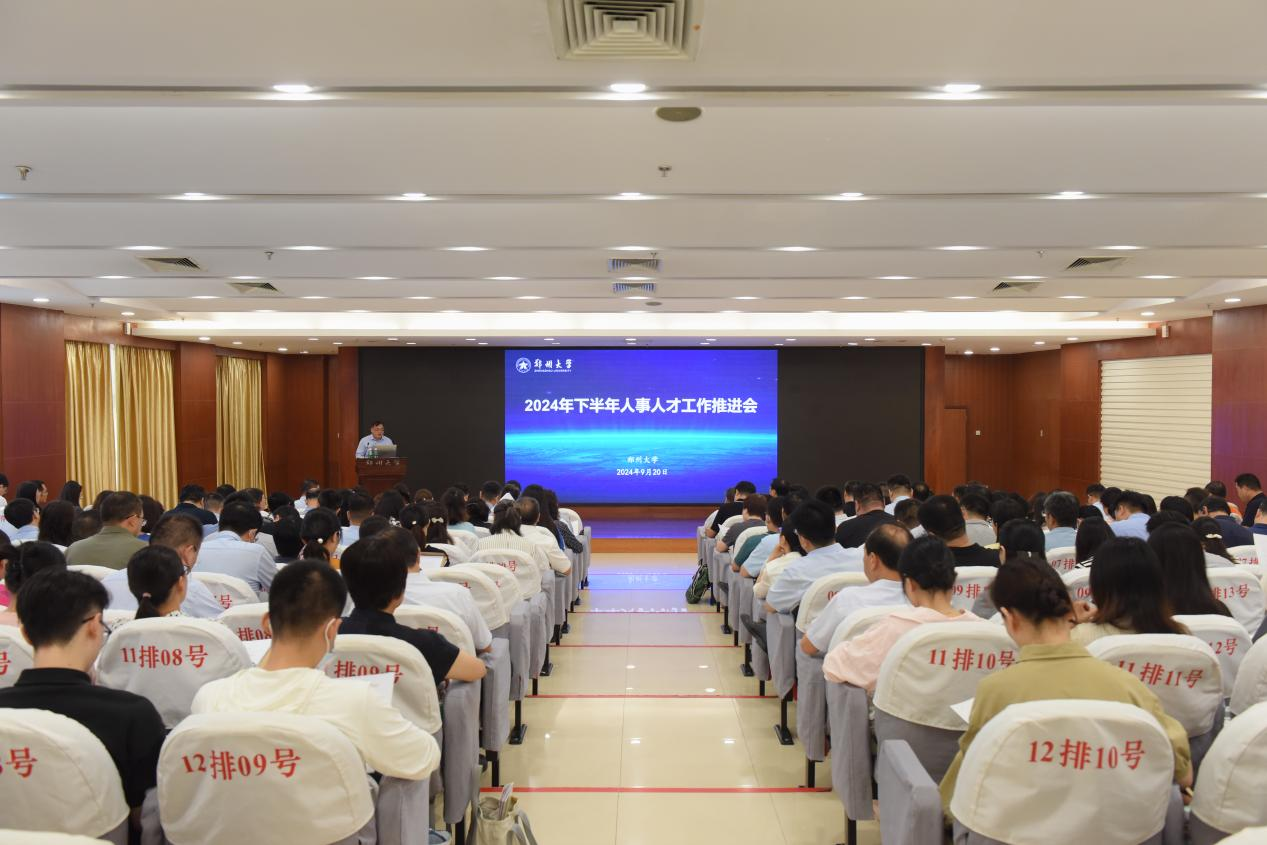 為貫徹落實學(xué)校2024年下半年工作會議精神,深入實施人才強校戰(zhàn)略,9月20日,鄭州大學(xué)召開2024下半年人事人才工作推進會。校黨委副書記、工會主席韓國河出席會議并講話。人事部(黨委教師工作部、黨委人才辦公室)、國際交流與合作處等部門負責(zé)同志,以及校內(nèi)63個教學(xué)科研單位的黨政主要負責(zé)同志、分管人事人才工作負責(zé)人等參加會議。會議由人事部主要負責(zé)同志主持。