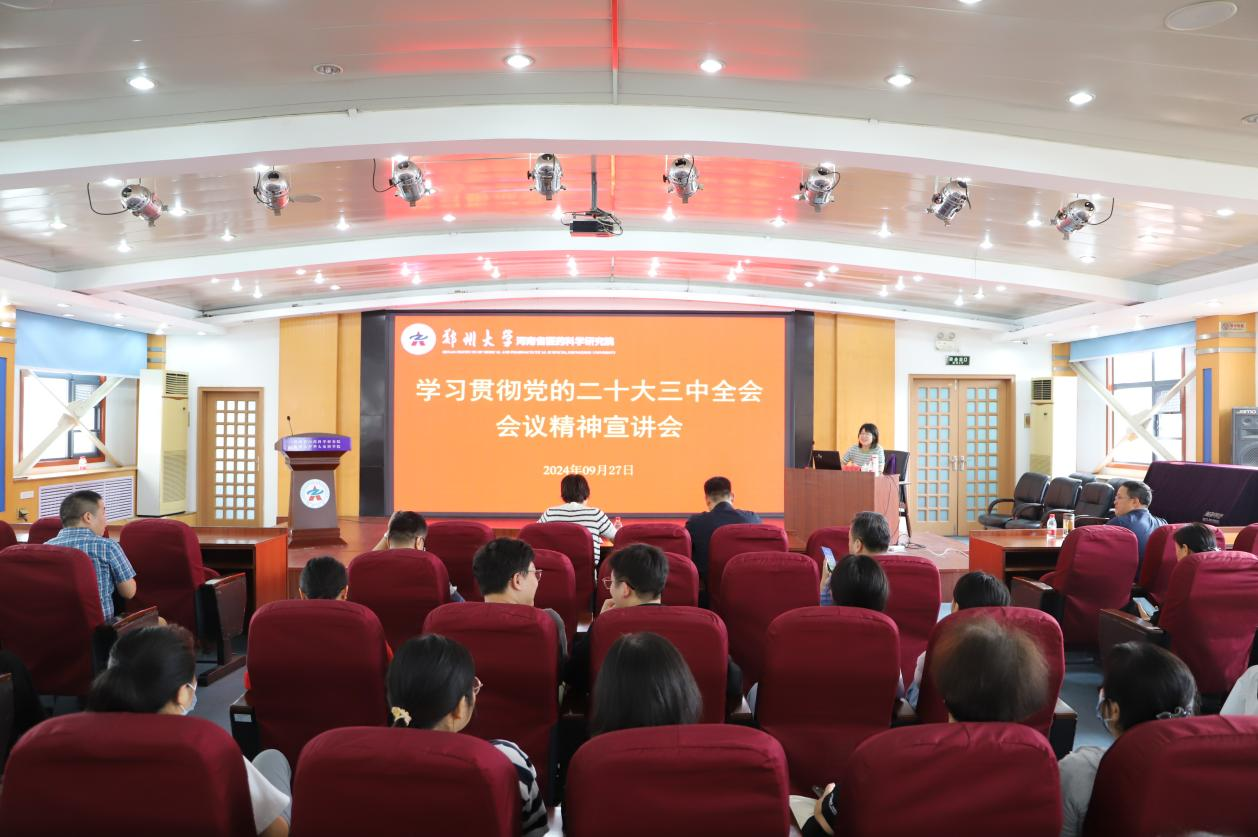 為深入學(xué)習(xí)宣傳貫徹黨的二十屆三中全會(huì)精神,根據(jù)校黨委統(tǒng)一部署,9月27日,鄭州大學(xué)學(xué)習(xí)貫徹黨的二十屆三中全會(huì)精神宣講團(tuán)成員、馬克思主義學(xué)院趙曉毅老師到河南省醫(yī)藥科學(xué)研究院作宣講報(bào)告。學(xué)院全體教工和學(xué)生代表參加。