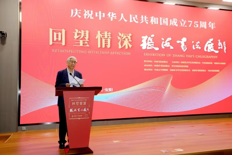 近日,由中國(guó)書(shū)法家協(xié)會(huì)指導(dǎo),河南省文學(xué)藝術(shù)界聯(lián)合會(huì),安陽(yáng)市委、市政府聯(lián)合主辦的慶祝中華人民共和國(guó)成立75周年“回望情深——張海書(shū)法展”在中國(guó)文字博物館徽文館正式開(kāi)展。