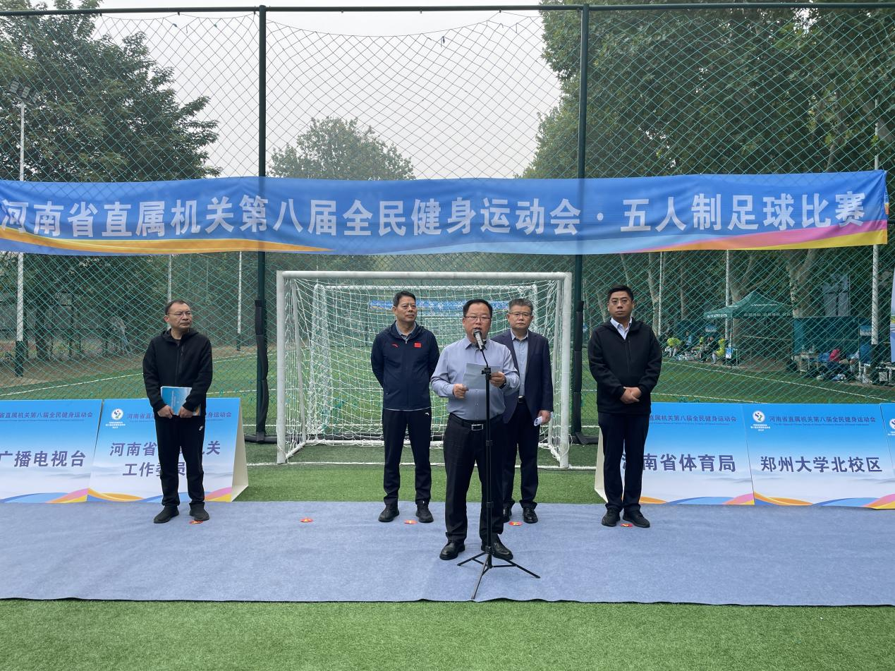 10月9日上午,河南省直屬機(jī)關(guān)第八屆全民健身運(yùn)動(dòng)會(huì)?五人制足球比賽在鄭州大學(xué)北校區(qū)舉行。河南廣播電視臺(tái)副臺(tái)長(zhǎng)李宗偉,鄭州大學(xué)黨委常委、副校長(zhǎng)徐東升出席開(kāi)幕式。北校區(qū)綜合管理中心、保衛(wèi)處、網(wǎng)絡(luò)空間安全學(xué)院等相關(guān)單位負(fù)責(zé)同志參加。