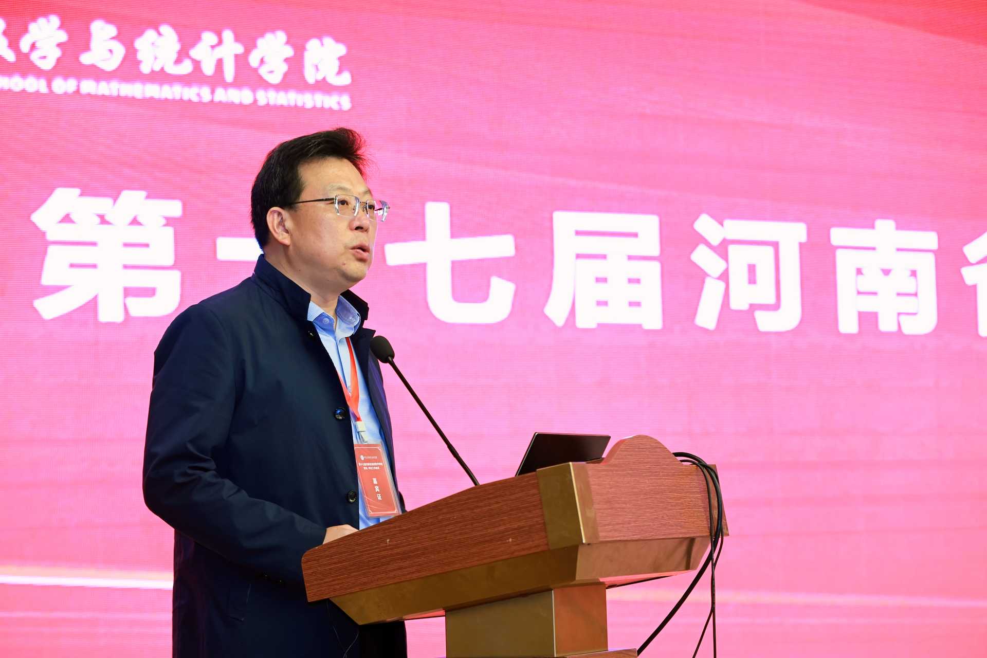 王利國致辭,他代表學校對會議的召開表示祝賀,對與會專家、領導表示熱烈的歡迎,并表示此次會議的召開,將為深化河南省高等數學教育內涵式高質量發展做出新的貢獻,也為我省各院校之間加深了解、進行高等教育研究提供了一個很好的平臺和交流機會。