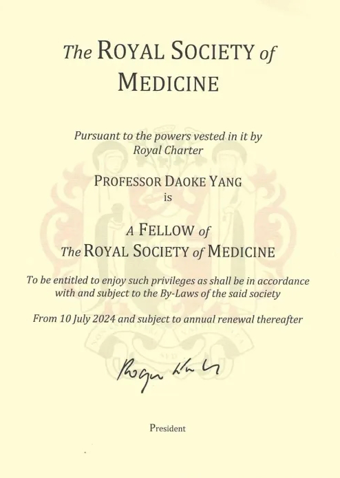 英國(guó)皇家醫(yī)學(xué)會(huì)是世界上歷史悠久、最具影響力的醫(yī)學(xué)學(xué)術(shù)組織之一,致力于推動(dòng)醫(yī)學(xué)科學(xué)的發(fā)展,提升全球醫(yī)療服務(wù)水平。該學(xué)會(huì)院士頭銜授予在醫(yī)學(xué)領(lǐng)域取得了突出成就的醫(yī)師和科學(xué)家。楊道科教授當(dāng)選為英國(guó)皇家醫(yī)學(xué)會(huì)院士,不僅是對(duì)其學(xué)術(shù)成就和重要貢獻(xiàn)的高度認(rèn)可,也是對(duì)鄭州大學(xué)醫(yī)學(xué)教育專業(yè)水平和人才培養(yǎng)的高度認(rèn)可。
