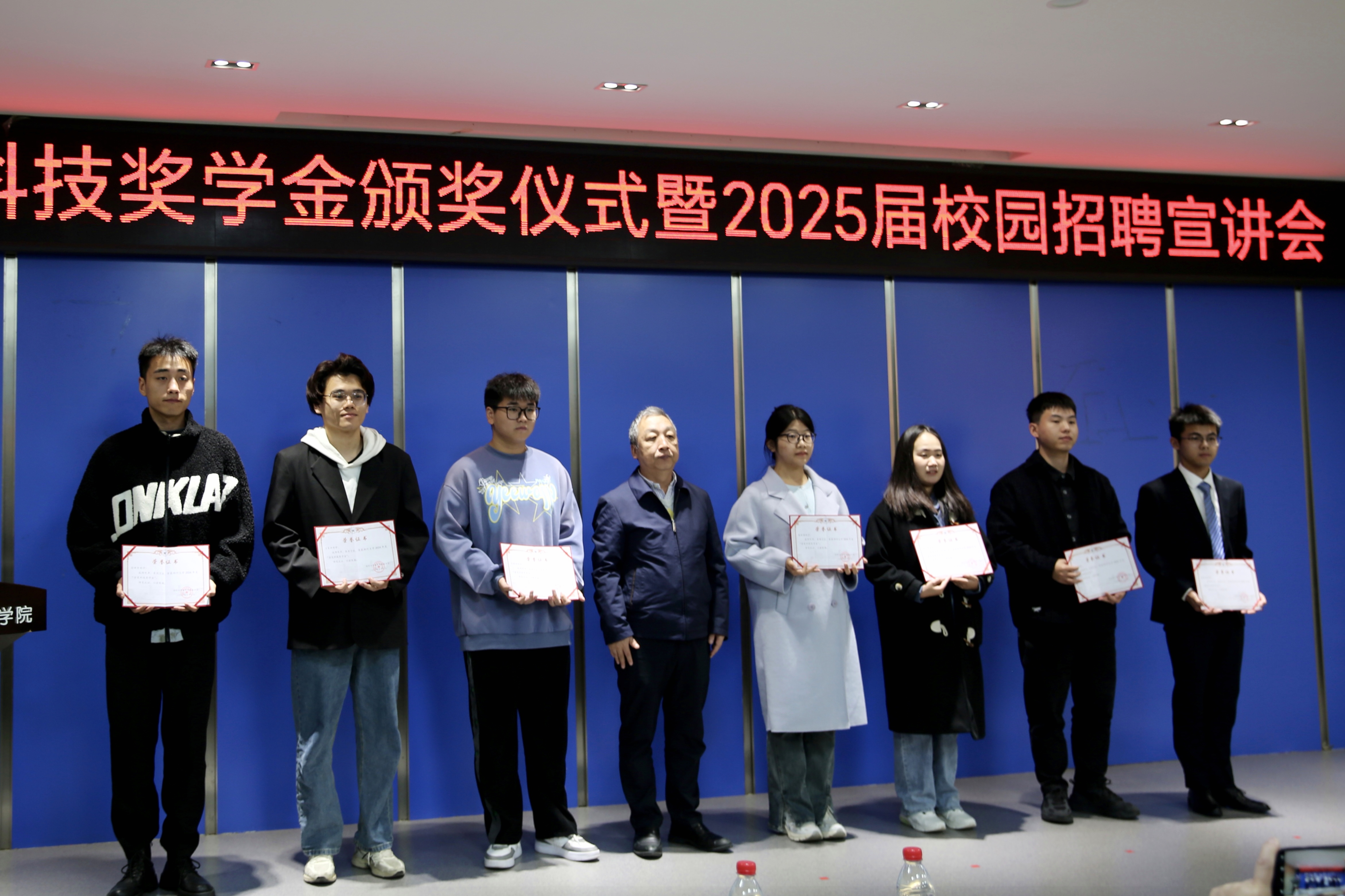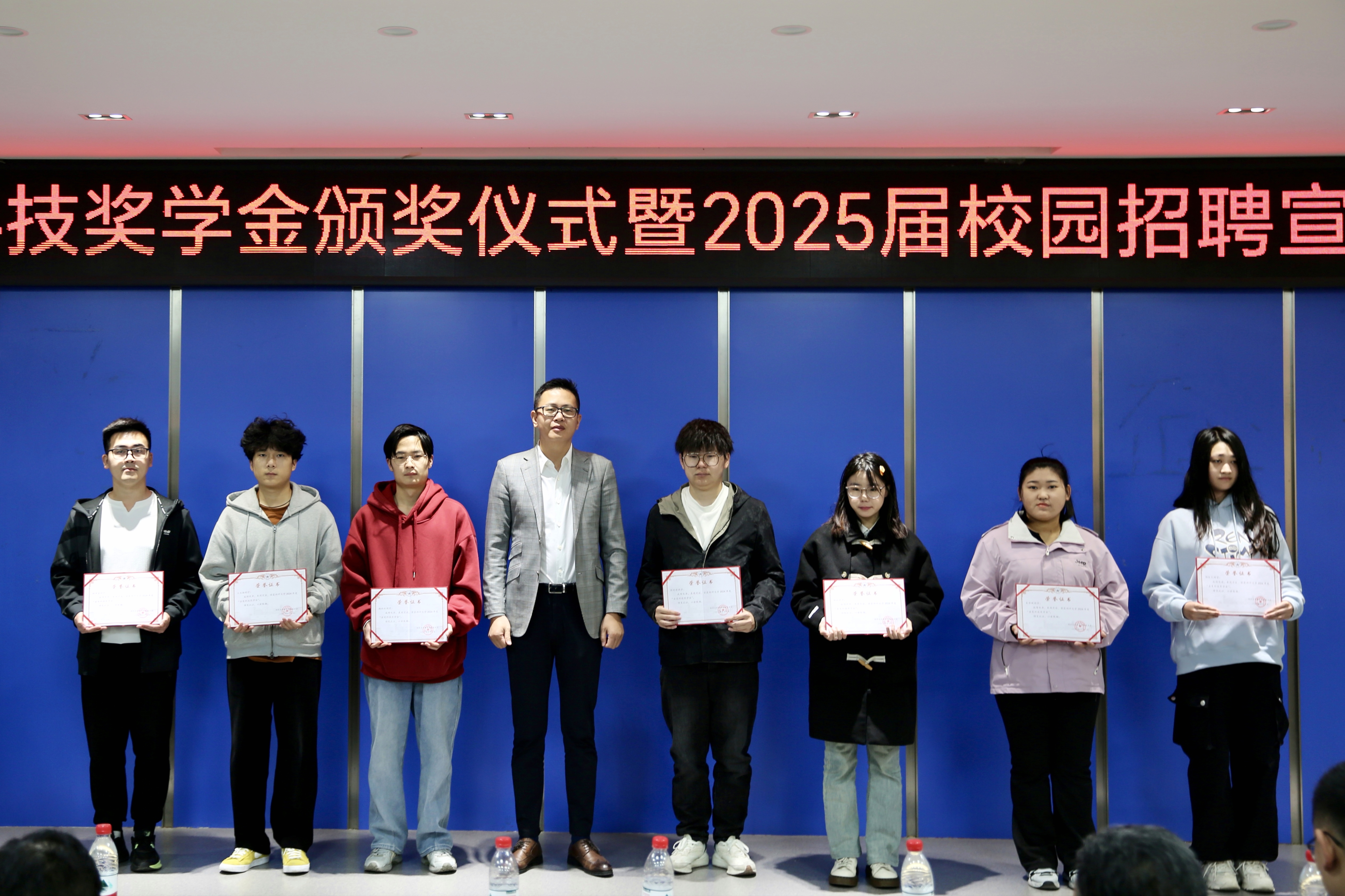 頒獎儀式上,與會領導嘉賓為獲獎學生代表頒發榮譽證書。儀式后,金發科技股份有限公司開展了2025屆校園招聘宣講會。(趙書樂 供稿 杜欣欣 攝影)
