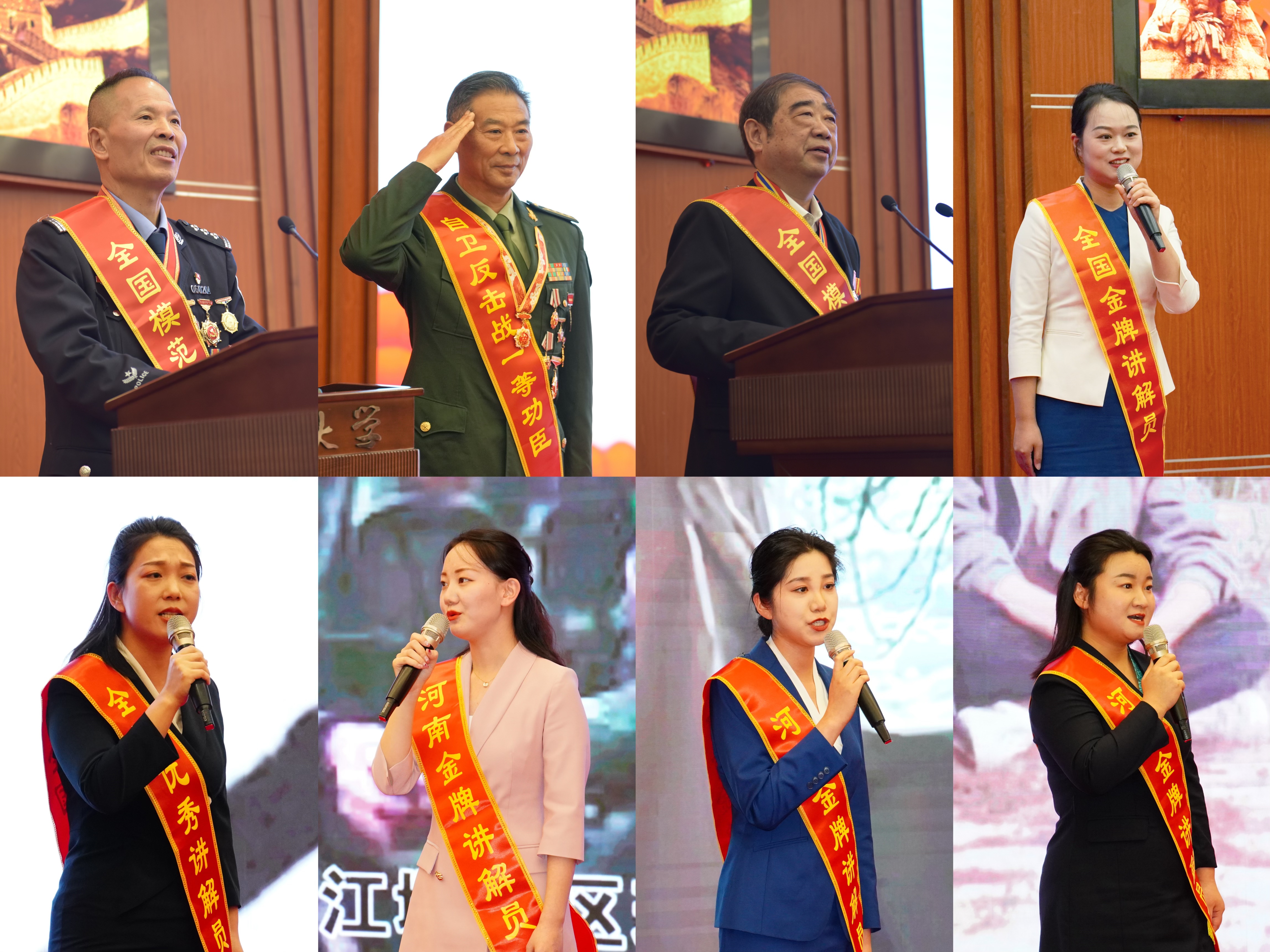 全國模范退役軍人、特級優秀人民警察陳曉磐,原漯河軍分區司令員、戰斗英雄李遠征,全國模范退役軍人、中國好人李東亮分享了自己和戰友在戰場上不怕犧牲、沖鋒陷陣的英勇事跡,退役后在不同崗位服務人民、投身公益的感人故事,生動詮釋了忠誠擔當、愛國奉獻的軍人本色。全國金牌講解員、新縣烈士陵園社會教育部主任張亞君,全國優秀講解員、澠池縣退役軍人事務局干部程清,鄭州烈士陵園干部、河南省金牌講解員常藝,楊靖宇將軍紀念館干部、河南省金牌講解員魏霖霖,洛陽烈士陵園干部、河南省金牌講解員李丹陽分別講述了革命先烈用生命譜寫的英雄史詩,帶領師生重溫中國共產黨波瀾壯闊的革命史、艱苦卓絕的奮斗史、可歌可泣的英雄史。
