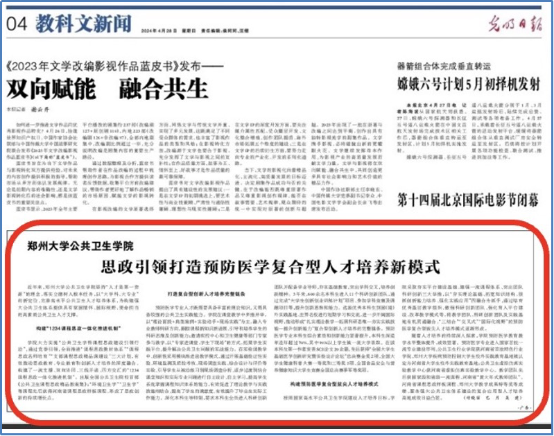 《光明日報》專題報道:思政引領預防醫學復合型人才培養新模式