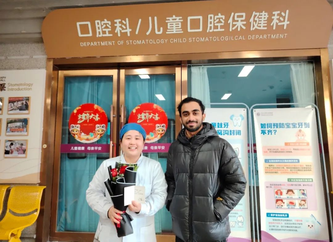 除夕,一位斯里蘭卡國際友人被牙疼困擾了多日,身在異國他鄉的他懷著忐忑的心情來到三附院口腔科尋求幫助,口腔科醫護人員熱心服務,英漢溝通無障礙,為他完成CT檢查,并借助翻譯軟件為他詳細講解治療方案,治療解除牙疼困擾,收到他的感謝花束。