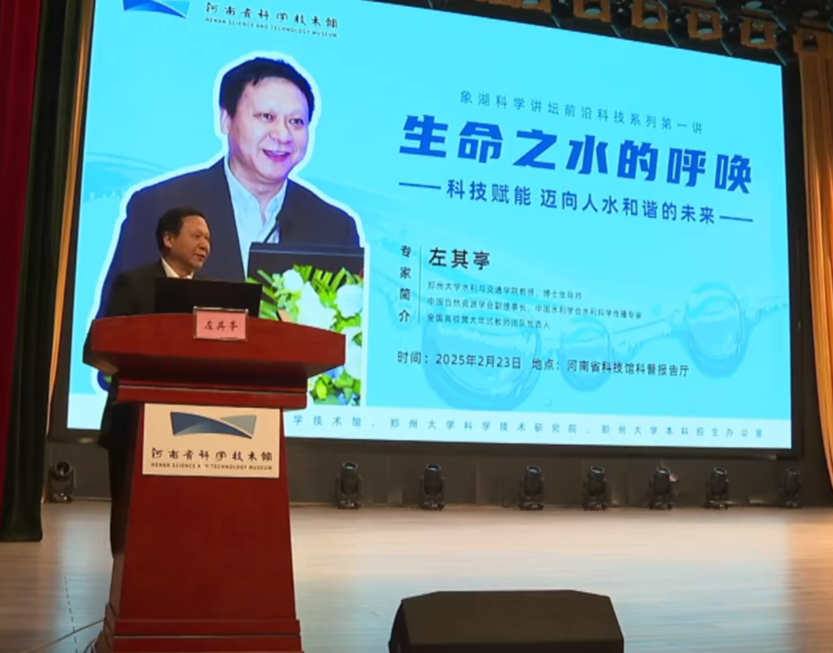 近日,鄭州大學水利與交通學院左其亭教授應河南省科技館的邀請,為“象湖科學講壇”之前沿科技系列活動開展“水科技”專題科普講座。河南省科技館館長趙德生,鄭州大學相關部門負責同志,鄭州市400余名中學師生,以及眾多線上線下社會公眾參加活動。