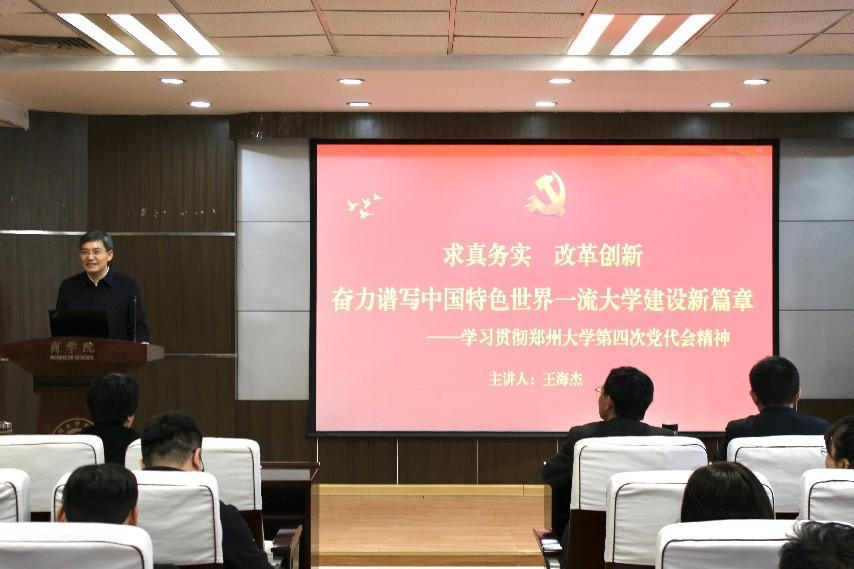 王海杰為商學院師生宣講鄭州大學第四次黨代會精神