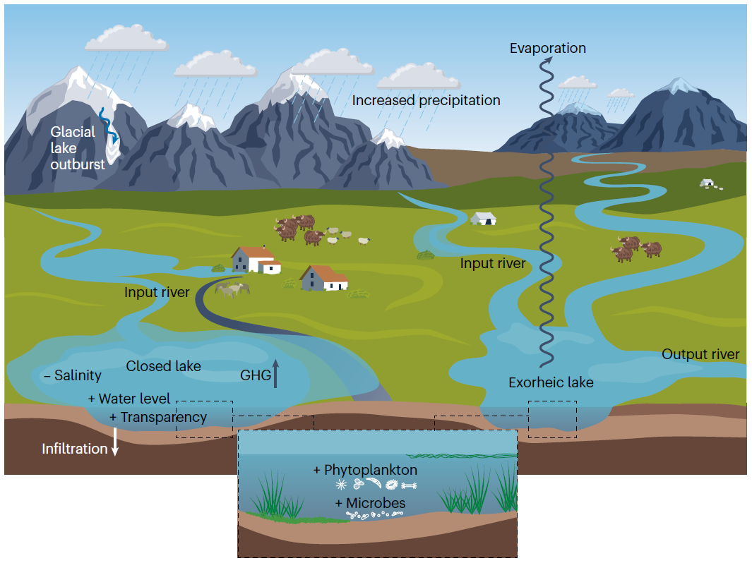 相關研究成果以“Physical and biogeochemical responses of Tibetan Plateau lakes to climate change”為題發表在《Nature Reviews Earth & Environment》上。地球科學與技術學院副教授喬寶晉為共同通訊作者,中國科學院青藏高原研究所研究員朱立平為論文第一作者和通訊作者,副研究員鞠建廷為共同通訊作者。