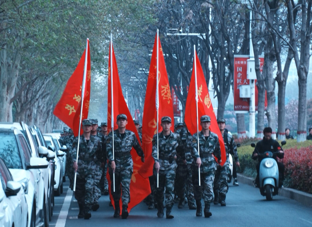 早晨6:00,三個校區的國旗護衛隊隊員身著迷彩服,精神抖擻——這支傳承二十余載的鋼鐵隊伍,肩負著護衛國旗的神圣使命,承載著鄭大學子的敬意與追思,高舉旗幟,列隊整齊,再次向丹青路方向前進。一路上,同學們用歌聲緬懷先烈,用步履堅定信仰,展現出鄭大學子能吃苦、肯擔當的優秀品質,漫長征途成為熔鑄家國情懷的移動思政課堂。