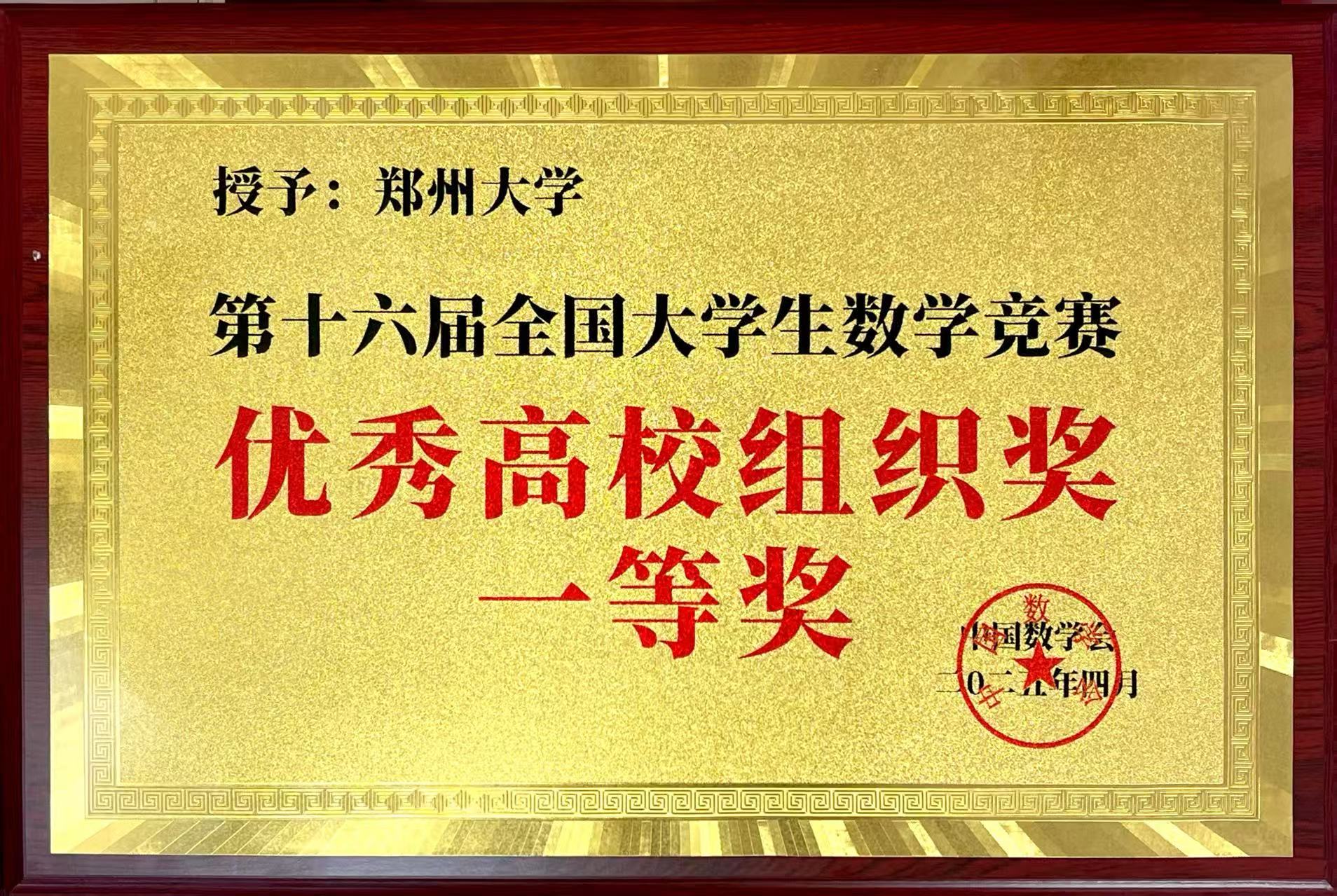 4月12日至13日,第十六屆全國大學生數學競賽決賽在浙江師范大學舉行。鄭州大學11名學生入圍決賽,并獲得1項一等獎、3項二等獎、7項三等獎。其中,數學與統計學院數學與應用數學專業2023級3班(拔尖人才班)胡錦陽同學憑借優異的表現榮獲大賽(數學類低年級組)一等獎。鄭州大學榮獲大賽優秀高校組織獎一等獎。