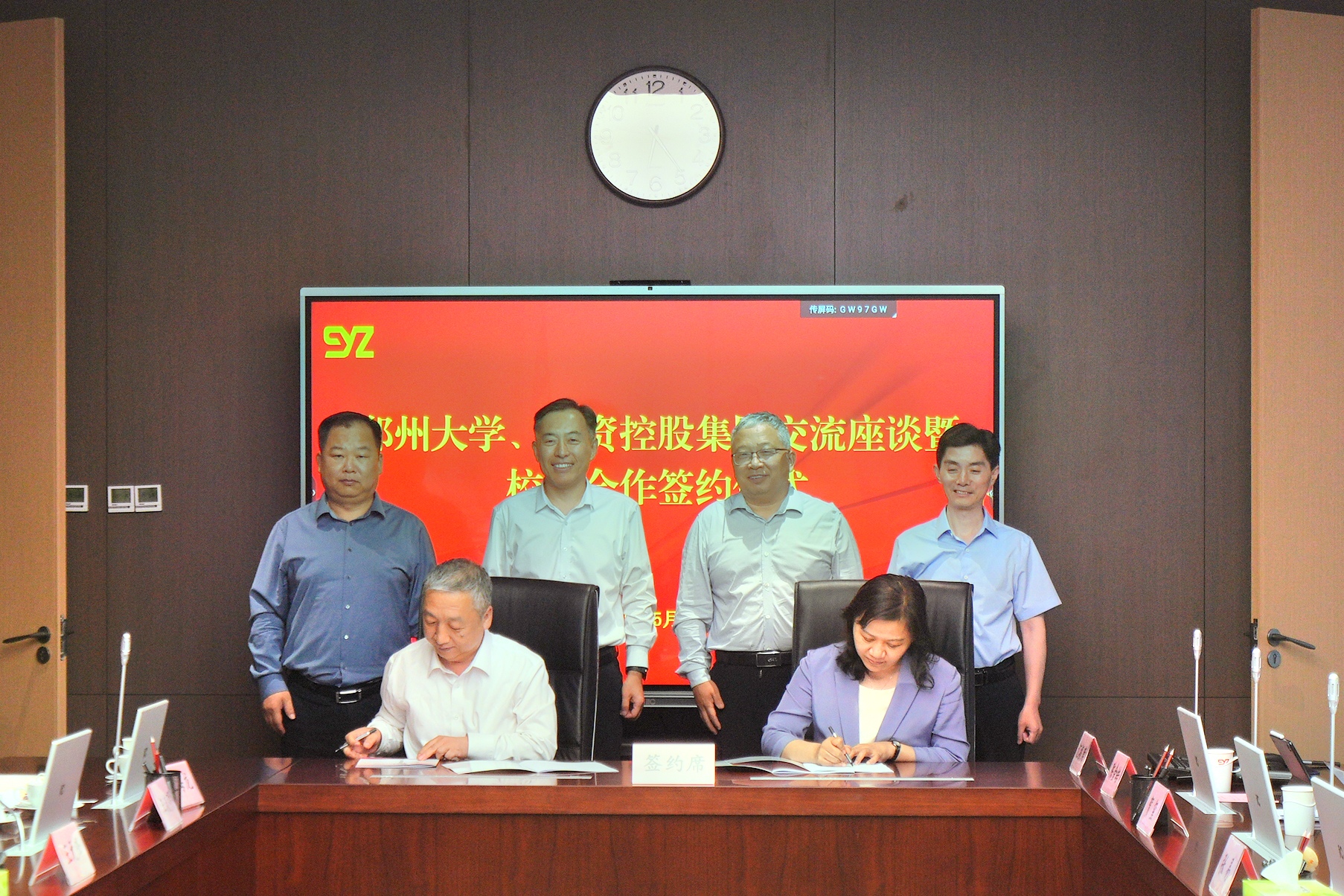 5月15日,鄭州大學與豫資控股集團舉行交流座談暨校企戰略合作協議簽約儀式。豫資控股集團黨委書記、董事長秦建斌,黨委副書記、副董事長、總經理繆文全,黨委副書記、新材料集團董事長吳國學;鄭州大學黨委書記李成偉,黨委常委、副校長徐東升,副校長劉春太出席,校企雙方相關部門負責人參加儀式。
