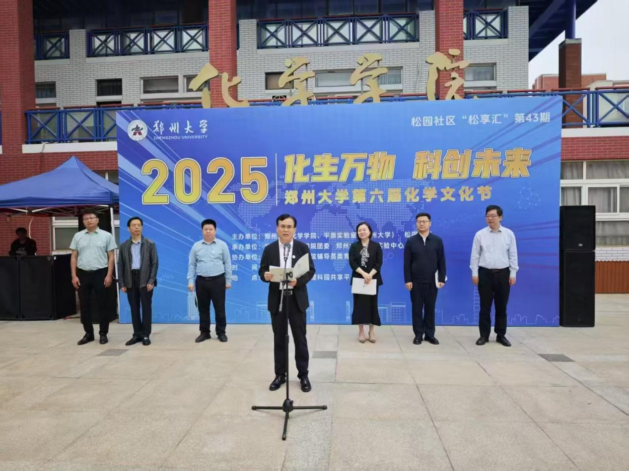為引導(dǎo)青年學(xué)子厚植科學(xué)精神、投身科研創(chuàng)新,在第二十五個(gè)全國科技活動(dòng)周和第九個(gè)全國科技工作者日到來之際,5月25日,鄭州大學(xué)第六屆化學(xué)文化節(jié)暨松園社區(qū)“松享匯”第43期科普活動(dòng)在主校區(qū)開幕。鄭州大學(xué)學(xué)術(shù)副校長、化學(xué)學(xué)院院長臧雙全,校黨委學(xué)生工作部、學(xué)生處,化學(xué)學(xué)院,校團(tuán)委負(fù)責(zé)同志,鄭州市桐淮小學(xué)、鄭州大學(xué)實(shí)驗(yàn)小學(xué)的師生和家長代表,以及松園社區(qū)、化學(xué)學(xué)院師生代表等300余人參加開幕式。開幕式由化學(xué)學(xué)院負(fù)責(zé)同志主持。
