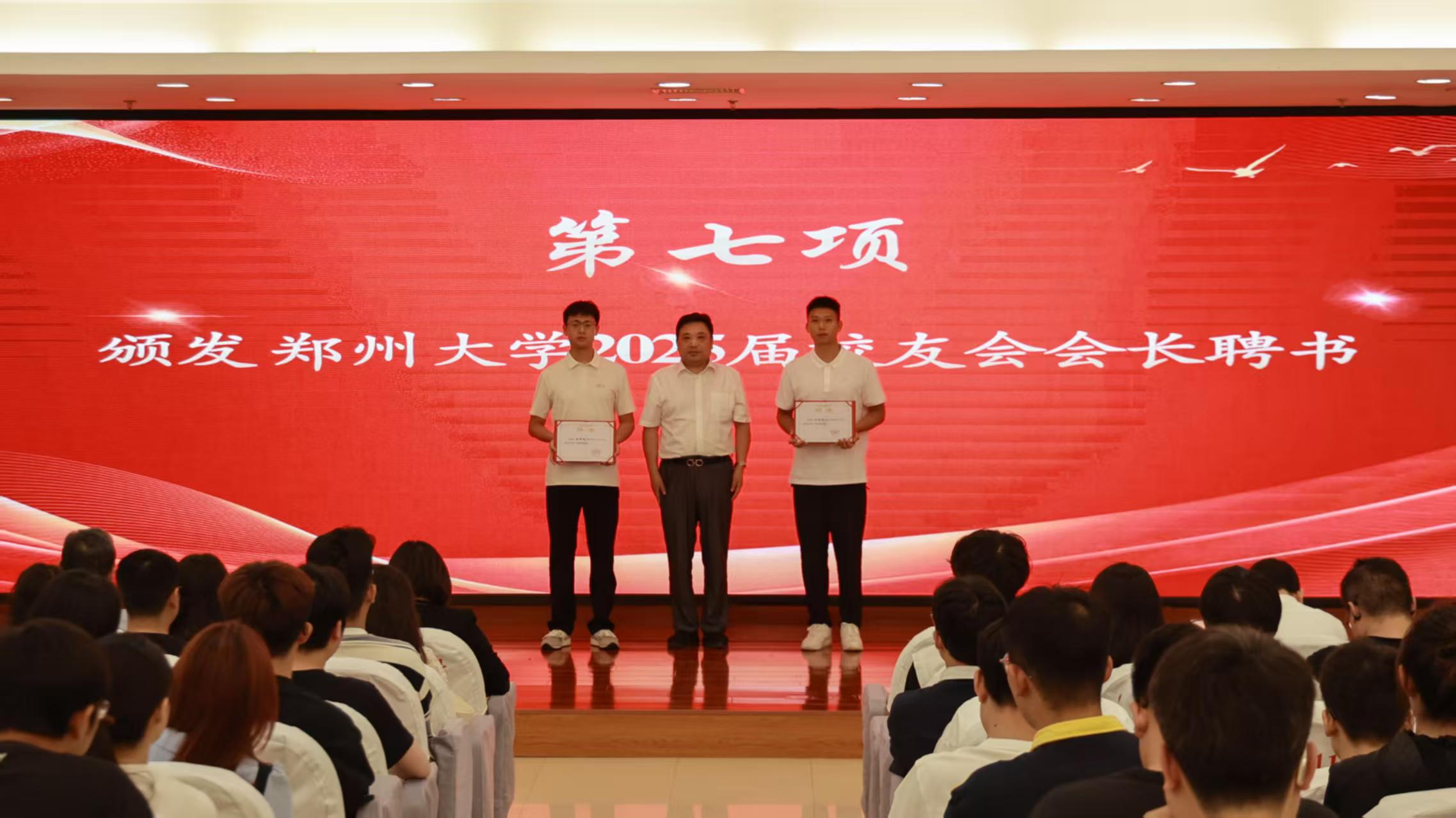 會上宣讀了《關于同意鄭州大學2025屆校友會成立的批復》,審議通過了《鄭州大學2025屆校友會章程》,選舉產生了2025屆校友會第一屆理事會,王柏涵、李澤榮任會長,張藝冉等17人任副會長,閆焱任秘書長。胡少偉為鄭州大學2025屆校友會揭牌、授旗。與會領導為2025屆校友會第一屆理事會成員頒發聘書。