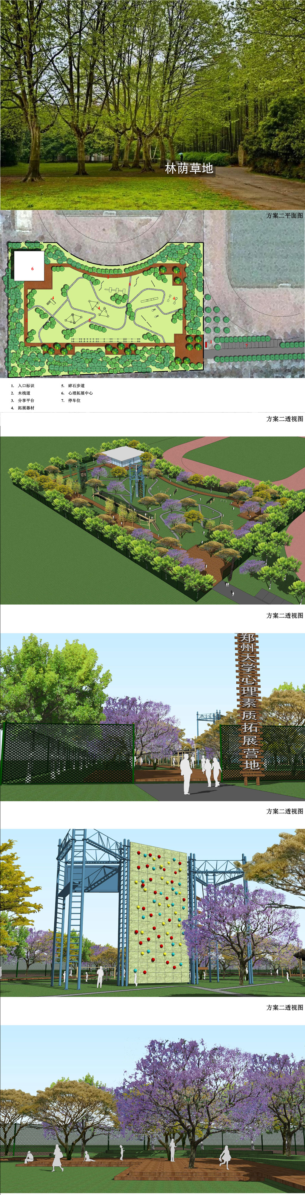 方案設計最大限度的保留的綠化空間,使拓展場地、休息空間、道路、綠地形成一個完善的生態系統。