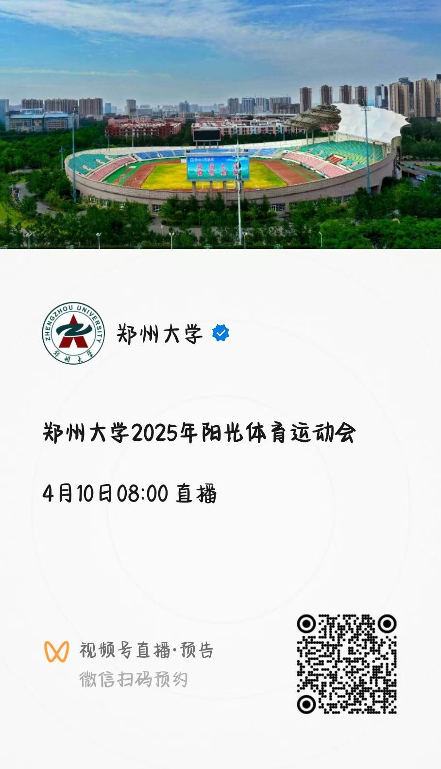 鄭州大學2025年陽光體育運動會開幕式將進行線上同步直播,全景展現運動會盛況。歡迎廣大師生、校友及家長屆時收看。